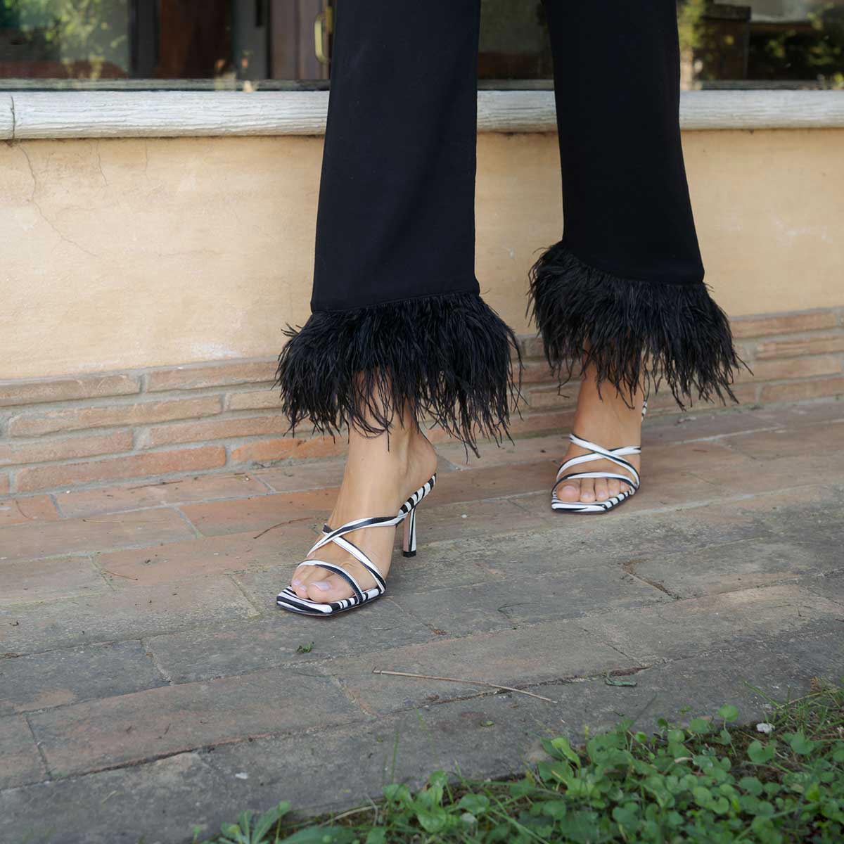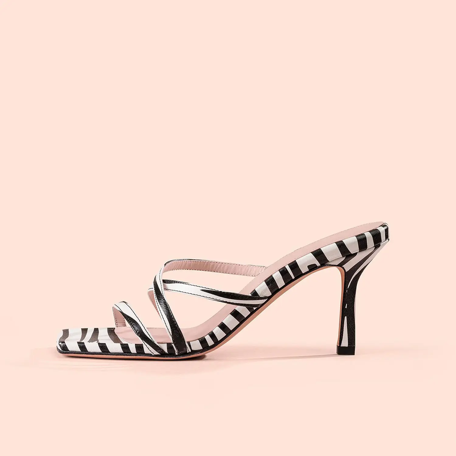 Il sandalo Bellini ha una silhouette semplice ma elegante che permette di indossarlo in ogni occasione e ad ogni ora. Interamente realizzato a mano in Italia, con cinturini in pelle minimalisti che fissano delicatamente il piede e poggiano sul nostro iconico tacco da 75 mm. È realizzato in morbida nappa zebrata e ha una suola in memory foam di 6 mm che conferisce un ulteriore comfort alla scarpa.